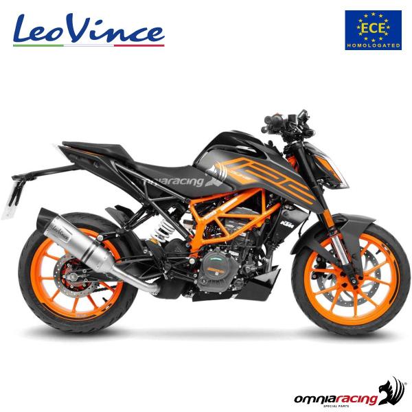 The Leovince LV ONE EVO KTM Duke 125 exhaust is approved, thanks to the included fitting and the screws supplied, installation is very simple, without making any modifications to the motorbike and without remapping the control unit.