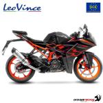 The Leovince LV ONE EVO KTM RC125 exhaust is approved, thanks to the included fitting and the screws supplied, installation is very simple, without making any modifications to the motorbike and without remapping the control unit.