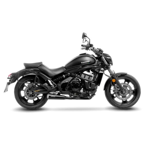 The Leovince 15130FBU exhaust for Kawasaki VULCAN S 650 2017-2020 GP ONE FULL BLACK model is a complete system perfect for increasing the performance of your motorbike. The silencer is made of Steel with steel headers, offering not only a notable increase in power, but also a significant weight reduction, an increase in torque and an engaging sound that enhances the driving experience.