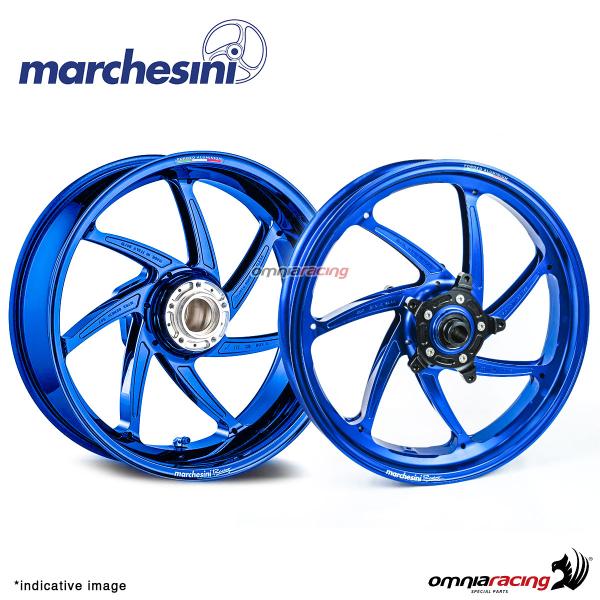 Marchesini M7RS Genesi 7 Spoke Blue anodizedForged aluminum for Yamaha MT-09 2014-2025 is a true masterpiece of engineering and design, bringing the best performance, lightweight construction, and stability from world-class racing circuits to your motorcycle. Including both front and rear wheels, this setup brings track-proven technology to the streets, combining cutting-edge craftsmanship with breathtaking aesthetics. The Marchesini rim is built from multi-forged aluminum, this wheel ensures strength, agility, and reduced rotational mass, enhancing acceleration, braking, and cornering precision.