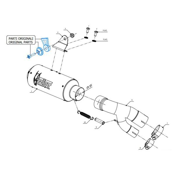 The Mivv MK3 exhaust is the perfect combination of performance, technology, and racing design. Inspired by exhausts used in Moto3 World Championship, the MK3 silencer stands out for its compact size, aggressive look, and the unmistakable Mivv sound. The end cap features a protective flame-breaker grid, giving the exhaust a unique racing aesthetic.