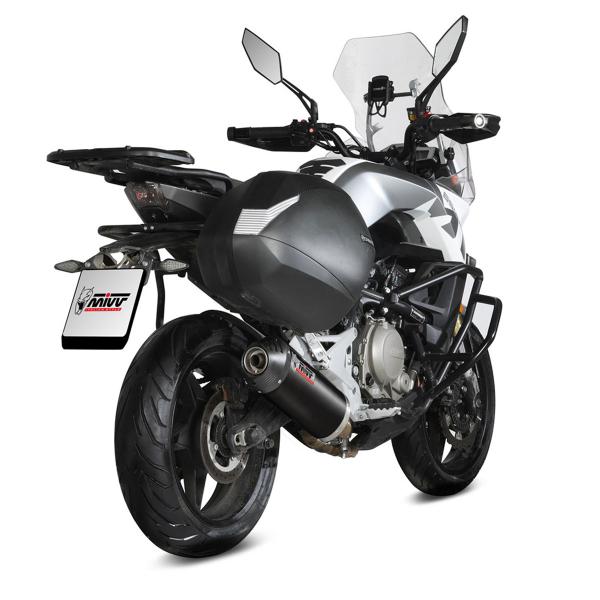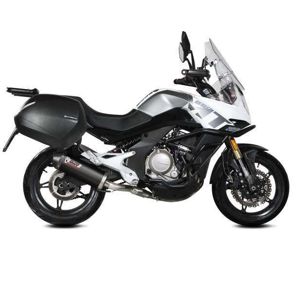 The MIVV CF.002.LVC Oval Black steel with carbon end cap exhaust for CF Moto 700MT 2024-2024 delivers the ultimate combination of race-inspired aesthetics and enhanced performance. Approval, this slip-on silencer offers noticeable weight reduction, improved horsepower and torque, and the signature Mivv sound.
