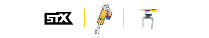 Developed with Ohlins technology STX has a 36mm internal piston, it's a monotube high pressure gas type of shock absorber with external “piggy back” reservoir and has variable wheelbase length. It is possible to choose the spring setting for free with rider weight and riding style.