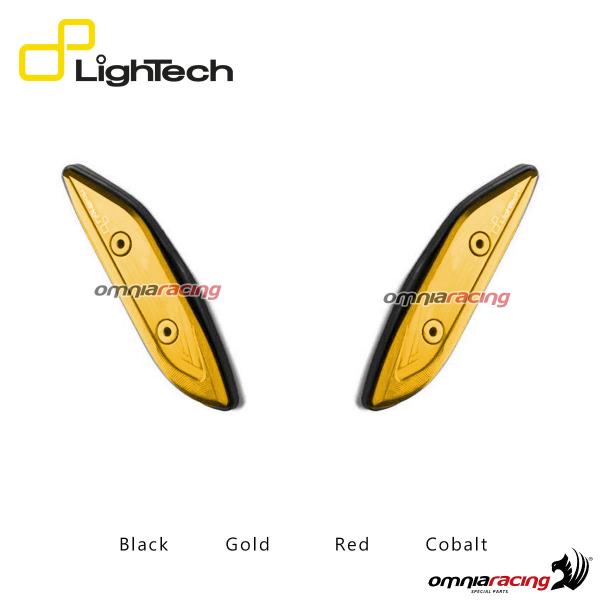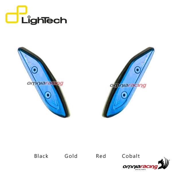 Lightech black aluminum mirror hole caps for Yamaha Tmax 560 2020-2021. Made of lightweight nero anodized Ergal aluminium, these mirror caps not only improve the aesthetics of your motorbike by making the fairing uniform, but also eliminate unwanted turbulence caused by the wind. Ideal for track use without mirrors, Lightech mirror caps guarantee a clean and aerodynamic look.