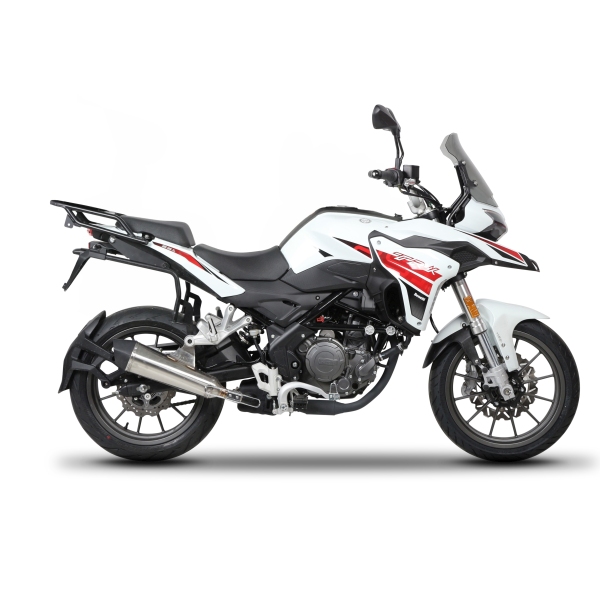 The SHAD 3P System side case brackets kit for Benelli TRK 251 2019-2025 for mounting SHAD side-cases, is a patented innovation designed to provide a sleek, minimalist design, perfectly integrated with your motorcycle. Its unique feature is that, when the side cases are removed, the low-profile support structure enhances the overall aesthetics of the bike, maintaining a clean and subtle appearance. With lightweight and durable construction, it enhances riding experience while ensuring maximum safety.