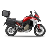 The SHAD 4P System side case brackets kit for Ducati Multistrada V4S 2021-2024 is designed for securely attaching SHAD side cases and bags to your motorcycle. Made from high-quality materials, it ensures maximum stability, strength, and durability, even in the most extreme conditions. The ultra-strong steel frame is covered with high-hardness metallic paint