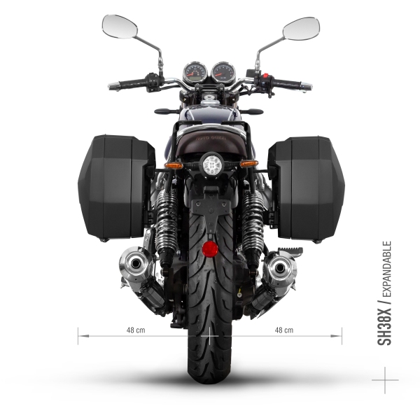 The SHAD 3P System side case brackets kit for Moto Guzzi V7 Stone/Stone Corsa 2023-2025 for mounting SHAD side-cases, is a patented innovation designed to provide a sleek, minimalist design, perfectly integrated with your motorcycle. Its unique feature is that, when the side cases are removed, the low-profile support structure enhances the overall aesthetics of the bike, maintaining a clean and subtle appearance. With lightweight and durable construction, it enhances riding experience while ensuring maximum safety.