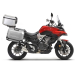 The SHAD 4P System side case brackets kit for Voge 500DS 2020-2025 is designed for securely attaching SHAD side cases and bags to your motorcycle. Made from high-quality materials, it ensures maximum stability, strength, and durability, even in the most extreme conditions. The ultra-strong steel frame is covered with high-hardness metallic paint