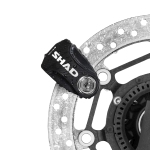 The SHAD SC62A disc lock black is a high-security device featuring a 120 dB built-in alarm, perfect for motorcycles, scooters, and bicycles. Equipped with motion and impact sensors, it provides extra protection against theft. Its solid zinc alloy construction, waterproof and corrosion-resistant, ensures maximum durability and reliability.