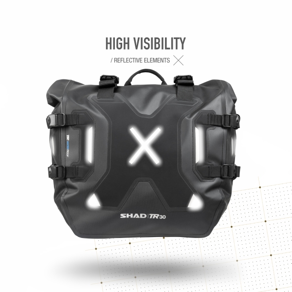 The waterproof side bags SHAD TR30 are side adventure bags, designed for motorcycle touring, made from highly durable and waterproof materials. With IPX6 certification, they provide total water protection even in extreme conditions.