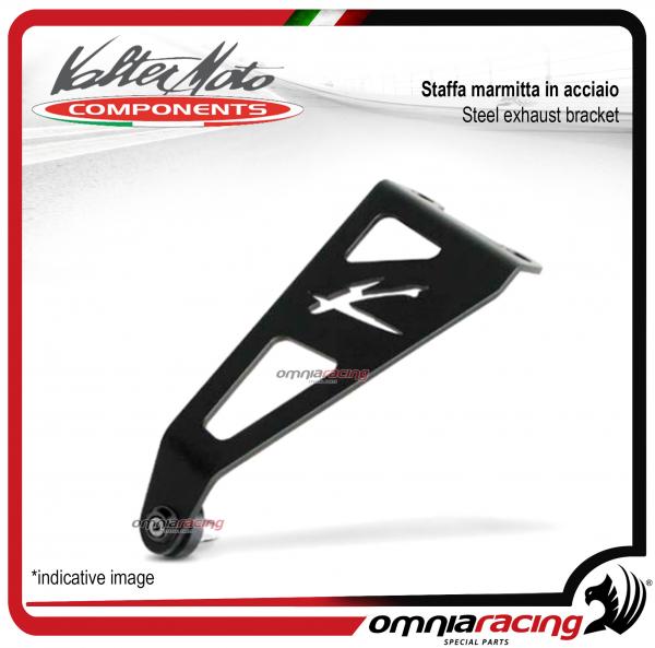 The Valtermoto bracket is made of high-grade steelIt is mounted using the holes of the original footpegs, its assembly will therefore be quick and easy. Designed primarily for use on the track, it requires the removal of passenger footpegs. Much lighter than the standard bracket, it is supplied with a Valtermoto brand conical spacer for fixing the silencer. The support is available in black only.