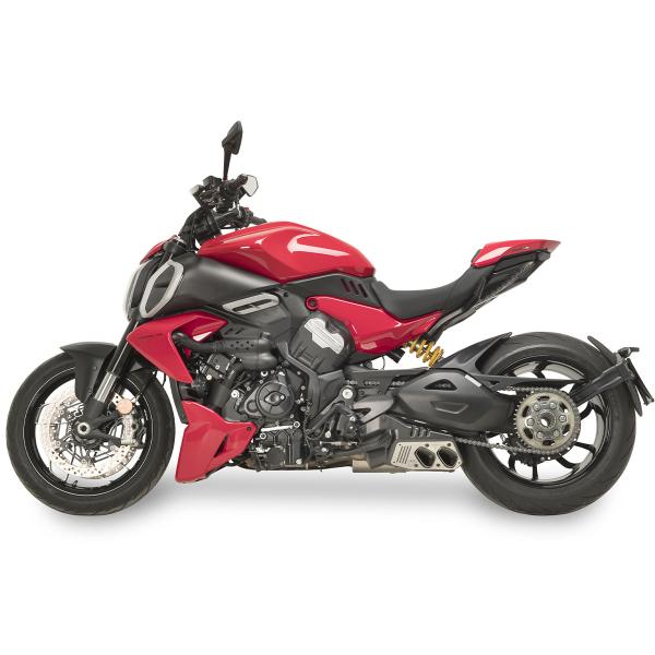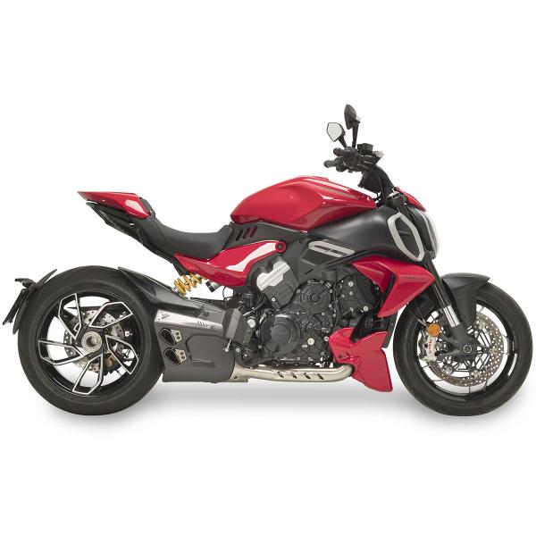 Discover the powerful Termignoni D22209440ITI exhaust for Ducati Diavel V4, the perfect choice to maximize the performance of your bike. This semi-complete stainless steel exhaust with titanium sleeve and de-cat headers and complete silencer with carbon heat shield is designed to offer exceptional performance and an unmistakable Italian sound.