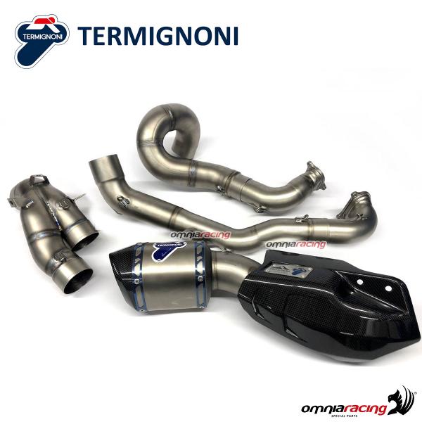 Termignoni exhaust and complete mufflers are made with the best materials available on the market.In compliance with the rules that each silencer must have in terms of lightness and performance using very high quality carbon, titanium, light and high performance metal, and high quality steel, simple or with Poppy processing (Carbon look effect). Each exhaust brings advantages and increases in terms of performance compared to the original exhaust mounted by the bike or scooter. The increase in horsepower of Termignoni exhausts is among the highest compared to other producers. The "sound" is something you MUST hear.