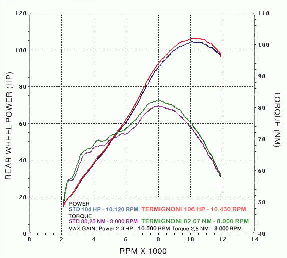 Termignoni exhaust and complete mufflers are made with the best materials available on the market.In compliance with the rules that each silencer must have in terms of lightness and performance using very high quality carbon, titanium, light and high performance metal, and high quality steel, simple or with Poppy processing (Carbon look effect). Each exhaust brings advantages and increases in terms of performance compared to the original exhaust mounted by the bike or scooter. The increase in horsepower of Termignoni exhausts is among the highest compared to other producers. The "sound" is something you MUST hear.