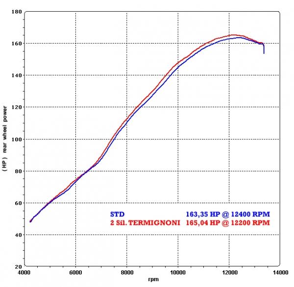 Termignoni exhaust and complete mufflers are made with the best materials available on the market.In compliance with the rules that each silencer must have in terms of lightness and performance using very high quality carbon, titanium, light and high performance metal, and high quality steel, simple or with Poppy processing (Carbon look effect). Each exhaust brings advantages and increases in terms of performance compared to the original exhaust mounted by the bike or scooter. The increase in horsepower of Termignoni exhausts is among the highest compared to other producers. The "sound" is something you MUST hear.