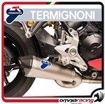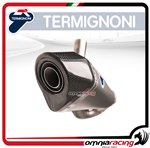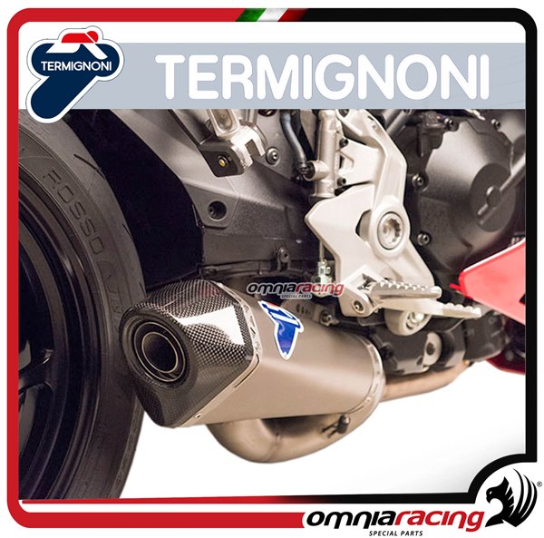 Termignoni exhaust and complete mufflers are made with the best materials available on the market.In compliance with the rules that each silencer must have in terms of lightness and performance using very high quality carbon, titanium, light and high performance metal, and high quality steel, simple or with Poppy processing (Carbon look effect). Each exhaust brings advantages and increases in terms of performance compared to the original exhaust mounted by the bike or scooter. The increase in horsepower of Termignoni exhausts is among the highest compared to other producers. The "sound" is something you MUST hear.
