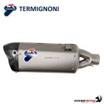 Termignoni exhaust and complete mufflers are made with the best materials available on the market.In compliance with the rules that each silencer must have in terms of lightness and performance using very high quality carbon, titanium, light and high performance metal, and high quality steel, simple or with Poppy processing (Carbon look effect). Each exhaust brings advantages and increases in terms of performance compared to the original exhaust mounted by the bike or scooter. The increase in horsepower of Termignoni exhausts is among the highest compared to other producers. The "sound" is something you MUST hear.