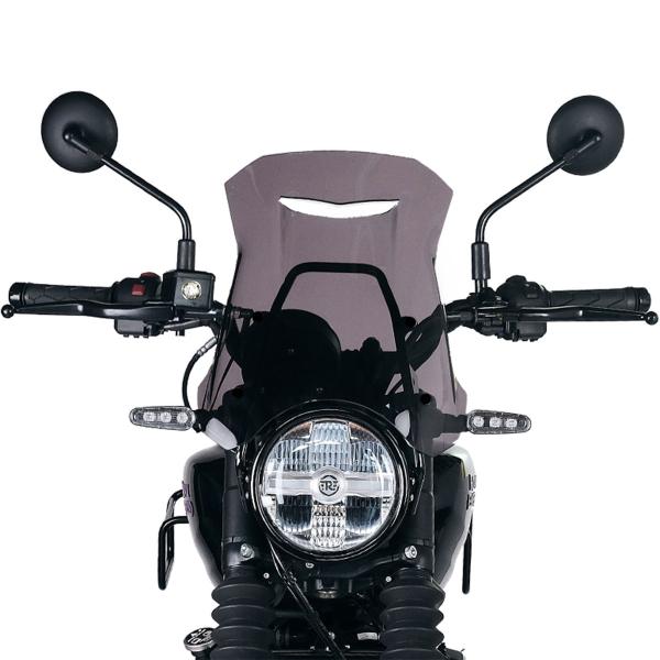 The Unit Garage dark smoke windshield for Royal Enfield Guerrilla 450 is engineered to perfectly match the design of your motorcycle while enhancing both comfort and style. It can be installed without any modifications, reusing the OEM screws and brackets, or using the dedicated mounting kit included. Its aerodynamic shape improves wind protection and overall riding experience, while giving your bike a sleek and aggressive look.