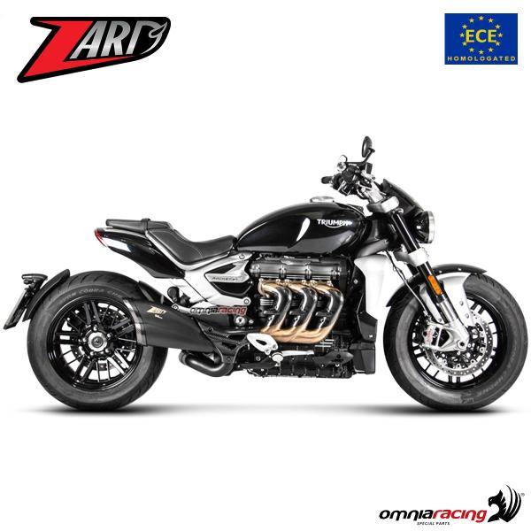 ZARD black steel exhaust slip-on approved carbon end cap Triumph Rocket III 2020-2023