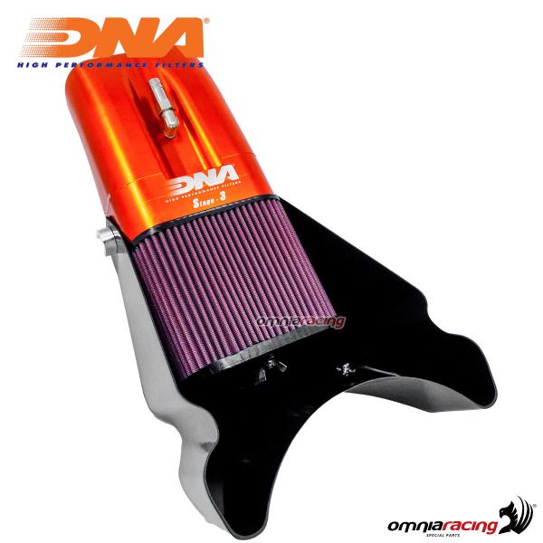 Il kit fase 3 di DNA, è costituito da un'air box completa e da un filtro aria, progettata per sostituire l'airbox di serie della moto Questo prodotto consente una migliore circolazione dell'aria nel filtro ed un flusso d'aria molto migliorato verso il motore. E' possibile ottenere incrementi fino a 12 Cv con lo stage 3. Questo prodotto è corredato di ogni componenete per l'istallazione più le istruzioni d'uso e montaggio. I filtri aria per moto DNA stage 3 hanno ottenuto il riconoscimento migliori design da parte della reddot