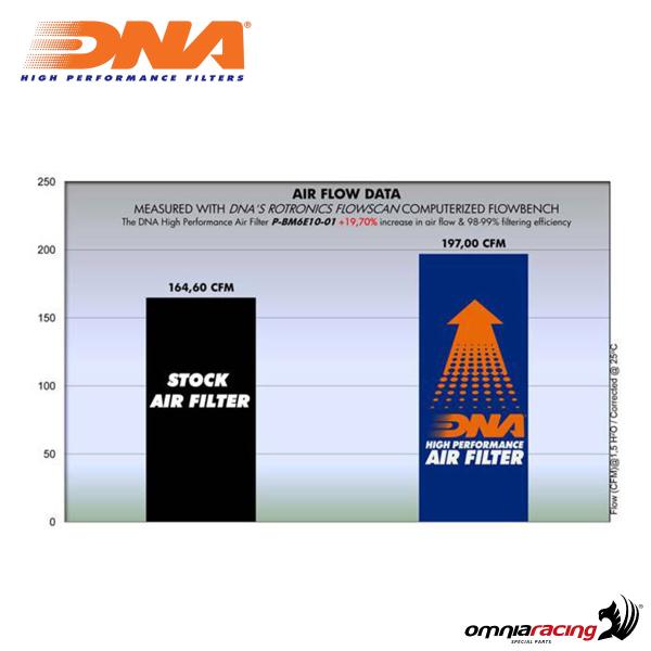 Il materiale filtrante di questi filtri è composto da 4 strati di cotone di altissima qualità, avvolti da una retina metallica che mantiene la forma del filtro anche sotto elevate pressioni d'aria, garantendo sempre un'eccellente efficienza e prestazioni superiori. I filtri aria DNA sono appositamente progettati per ottenere il massimo rendimento dal motore della tua moto, assicurando un flusso d'aria pulita ottimale. La loro efficienza raggiunge livelli elevati, fino al 98-99%.