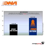 Il materiale filtrante di questi filtri è composto da 4 strati di cotone di altissima qualità, avvolti da una retina metallica che mantiene la forma del filtro anche sotto elevate pressioni d'aria, garantendo sempre un'eccellente efficienza e prestazioni superiori. I filtri aria DNA sono appositamente progettati per ottenere il massimo rendimento dal motore della tua moto, assicurando un flusso d'aria pulita ottimale. La loro efficienza raggiunge livelli elevati, fino al 98-99%.