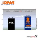 Il materiale filtrante di questi filtri è composto da 4 strati di cotone di altissima qualità, avvolti da una retina metallica che mantiene la forma del filtro anche sotto elevate pressioni d'aria, garantendo sempre un'eccellente efficienza e prestazioni superiori. I filtri aria DNA sono appositamente progettati per ottenere il massimo rendimento dal motore della tua moto, assicurando un flusso d'aria pulita ottimale. La loro efficienza raggiunge livelli elevati, fino al 98-99%.