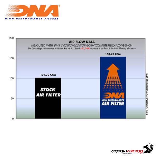 Il materiale filtrante di questi filtri è composto da 4 strati di cotone di altissima qualità, avvolti da una retina metallica che mantiene la forma del filtro anche sotto elevate pressioni d'aria, garantendo sempre un'eccellente efficienza e prestazioni superiori. I filtri aria DNA sono appositamente progettati per ottenere il massimo rendimento dal motore della tua moto, assicurando un flusso d'aria pulita ottimale. La loro efficienza raggiunge livelli elevati, fino al 98-99%.