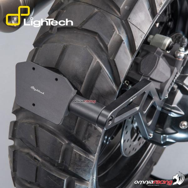 La sua regolabilità in diverse posizioni permette di personalizzare l'angolo e l'altezza del portatarga per adattarsi alle tue preferenze estetiche e alle esigenze di montaggio. Inoltre, il portatarga Lightech include una luce targa e un catadiottro montato con un angolo di 30°, garantendo la piena omologazione legale.