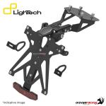 La sua regolabilità in diverse posizioni permette di personalizzare l'angolo e l'altezza del portatarga per adattarsi alle tue preferenze estetiche e alle esigenze di montaggio. Inoltre, il portatarga Lightech include una luce targa e un catadiottro montato con un angolo di 30°, garantendo la piena omologazione legale.