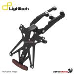La sua regolabilità in diverse posizioni permette di personalizzare l'angolo e l'altezza del portatarga per adattarsi alle tue preferenze estetiche e alle esigenze di montaggio. Inoltre, il portatarga Lightech include una luce targa e un catadiottro montato con un angolo di 30°, garantendo la piena omologazione legale.