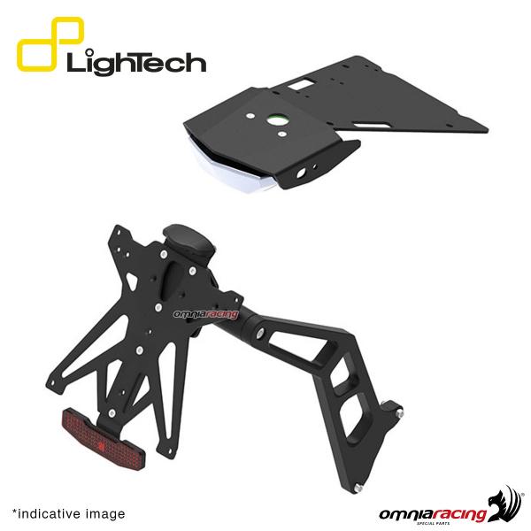 La sua regolabilità in diverse posizioni permette di personalizzare l'angolo e l'altezza del portatarga per adattarsi alle tue preferenze estetiche e alle esigenze di montaggio. Inoltre, il portatarga Lightech include una luce targa e un catadiottro montato con un angolo di 30°, garantendo la piena omologazione legale.
