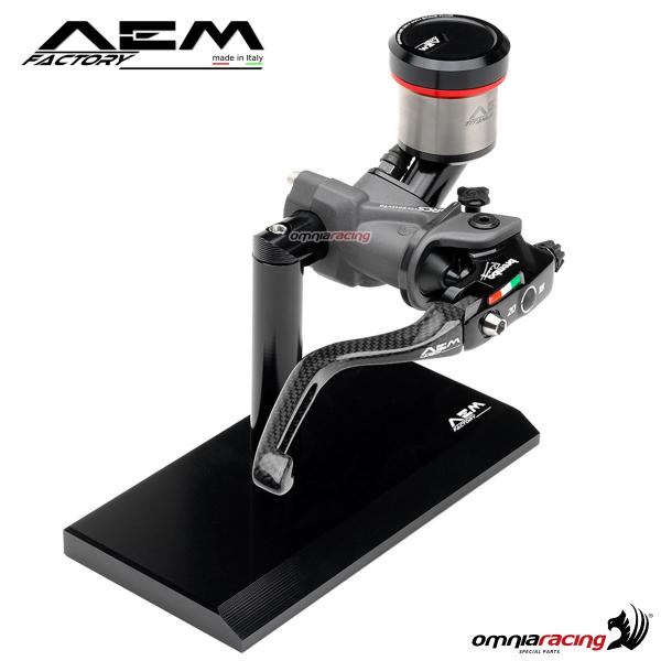 Da un'idea originale di AEM prendono vita le leve per freno e frizione realizzate totalmente in fibra di carbonio. La leggereza e la resistenza del carbonio unite in una leva dalle caratteristiche uniche. Il particolare disegno della leva ed il foro passante la rende estremamente aerodinamica. L'estetica del prodotto è senza pari utili e belle da vedere. Il suporto di montaggio della leva è in alluminio anodizzato e disponibile in diverse varianti colorate.