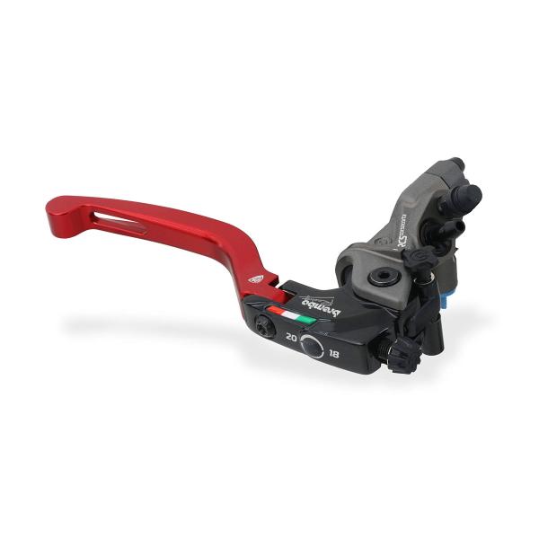 La leva finale CNC Racing IFL02R corta è compatibile per pompe radiali Brembo RCS e RCS CorsaCorta sia freno che frizione ed è realizzata in alluminio rosso con lavorazione CNC con foro finale per il passaggio dell'aria.
