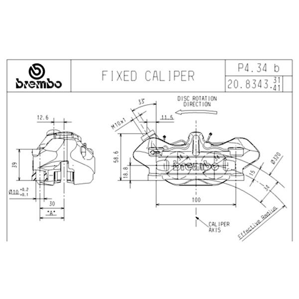 Pinza freno anteriore Destra Brembo P4 34B DX Silver interasse 100mm