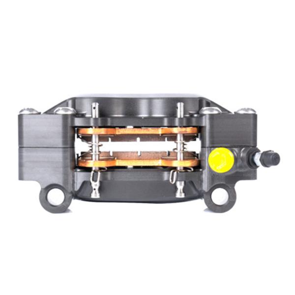Con un interasse di 100 mm e uno offset di 30 mm, la pinza è progettata per massimizzare la potenza frenante, offrendo una risposta rapida e precisa alle richieste del pilota. I 2 pistoncini in alluminio, uno con diametro di 34 mm e l'altro con diametro di 38 mm, offrono un equilibrio ideale tra peso leggero e potenza frenante, garantendo prestazioni superiori e resistenza alle temperature elevate.
