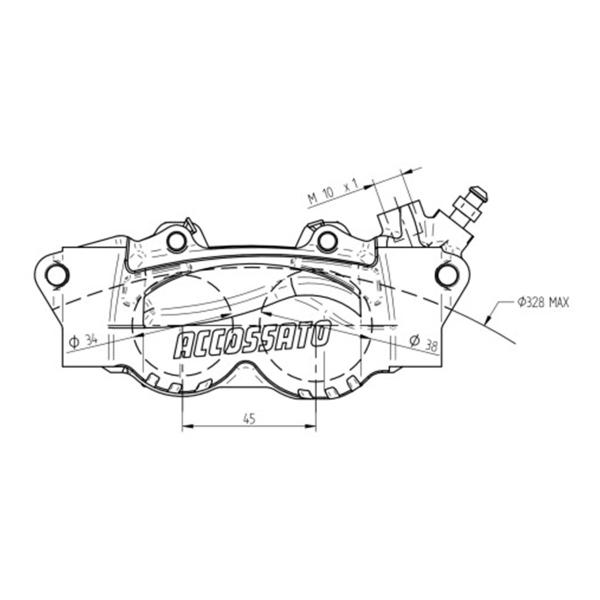 Con un interasse di 108 mm e uno offset di 30 mm, la pinza è progettata per massimizzare la potenza frenante, offrendo una risposta rapida e precisa alle richieste del pilota. I 2 pistoncini in alluminio, uno con diametro di 34 mm e l'altro con diametro di 38 mm, offrono un equilibrio ideale tra peso leggero e potenza frenante, garantendo prestazioni superiori e resistenza alle temperature elevate.