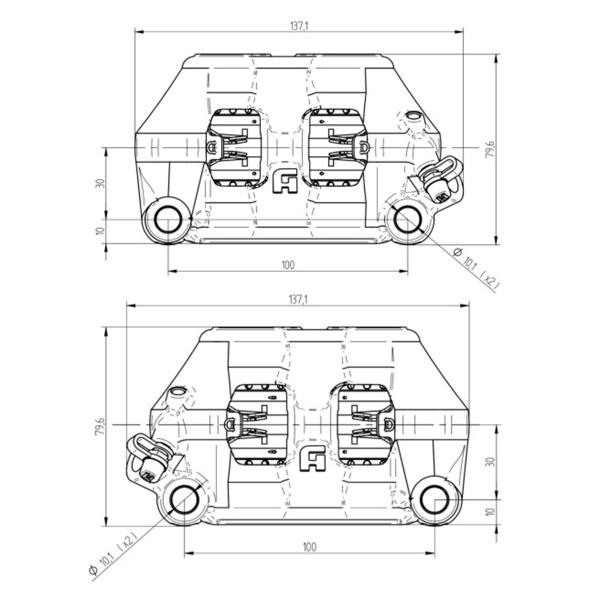 Con uninterasse di 100mm e uno offset di 30mm, questa pinza offre una geometria studiata per massimizzare la potenza frenante. La sua progettazione mira a ottenere il massimo delle prestazioni sulla pista.