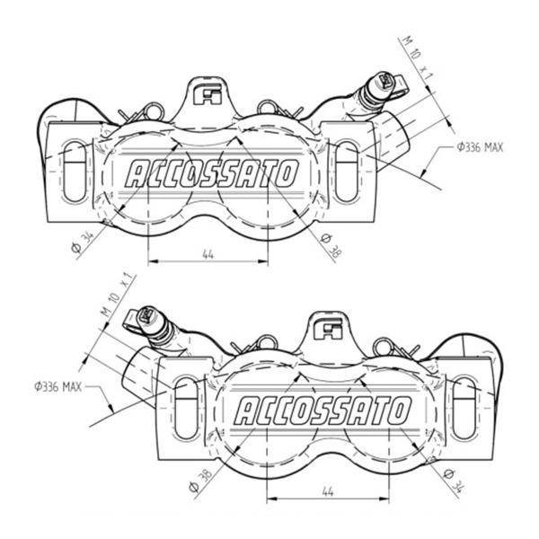 • Pistoncini: in titanio autoventilati: 2 diam. 34mm + 2 diam. 38mm