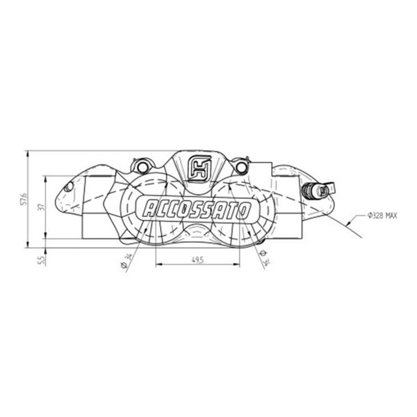 Pinza freno destra radiale nera Accossato ricavata CNC monoblocco 108mm pistoni Titanio