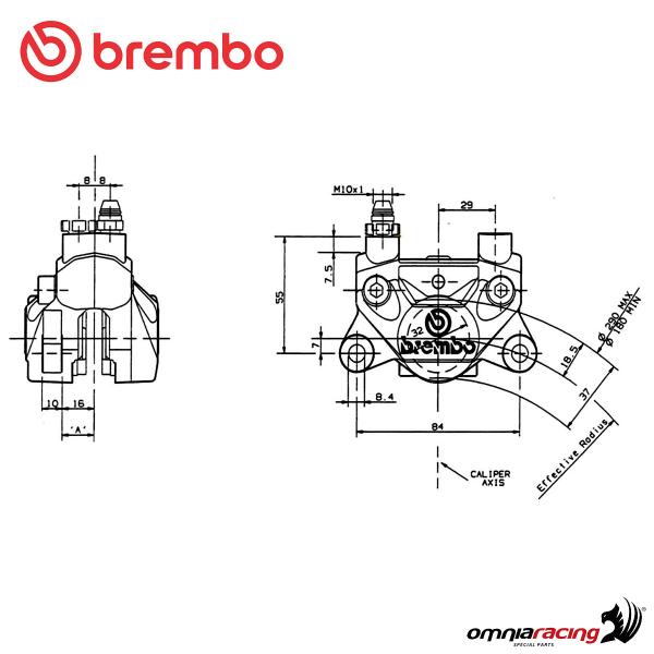 Pinza freno posteriore Brembo P2 32F Nero interasse 84mm
