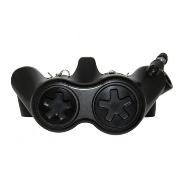 Pinza freno sinistra radiale nera Accossato ricavata CNC monoblocco 100mm pistoni Titanio