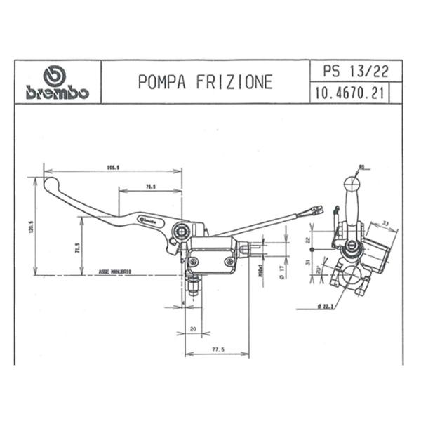 Pompa Frizione Assiale Brembo PS13 Nera leva silver con switch