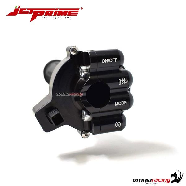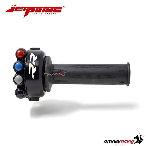 Le nuove moto non utilizzano più il comando gas formato da un rocchetto con cavi d'acciao, ma un più moderno potenziometro digitale che passa i comandi di apertura gas direttamente alla centralina elettronica. Questo comando azzera le fastidiose flessioni del comando originale e nell'utilizzo estremo ridcuce le possibilità di perdita del segnale. La cover in ergal JetPrime sostituisce questo componente solitamente in plastica con uno in robusto alluminio (Ergal) che preserva l'elettronica interna fornendo i comandi di serie della moto, sempre secondo le direttive del Plug&Play.