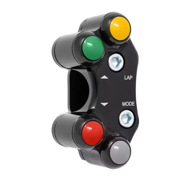 Il montaggio Plug&Play non richiede modifiche: basta sostituire la pulsantiera di serie e collegare il connettore rapido. La struttura è resistente all’acqua (IP69K) e i tasti colorati sono completamente intercambiabili.