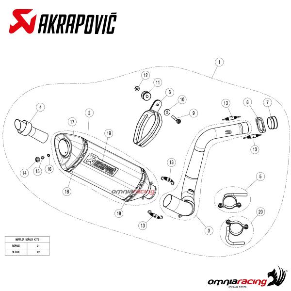 Lo scarico completo Akrapovic BMW G310R / G310GS è Racing e non soddisfa i requisiti di conformità sulle emissioni per l'uso su strada o autostrada.