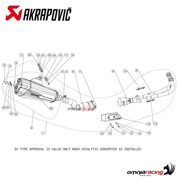 Risposta: Il catalizzatore si compra a parte , è opzionale per la sua marmitta. https://www.omniaracing.net/advanced_search_result.php?keywords=P-KAT-059&lid=4 il codice akrapovic è p-kat-019