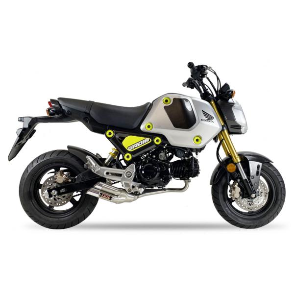 L’impianto di scarico completo IXIL Dual Hyperlow racing (non omologato) per Honda MSX 125 - Grom 2013-2020 è la soluzione perfetta per chi cerca prestazioni massime, peso ridotto e un sound sportivo, con aumento di cavalli e coppia per la massima performance. Il sistema comprende collettori racing in acciaio inox e il terminale con corpo in Acciaio inox Lucidato opaco e fondello in Alluminio anodizzato .