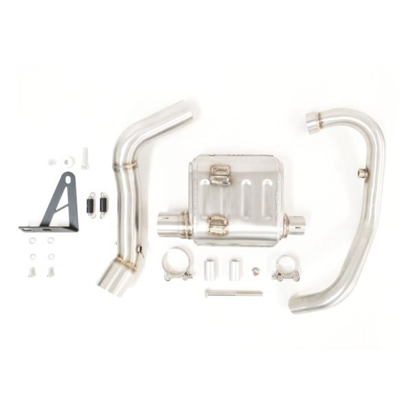 Un upgrade completo che ottimizza il flusso dei gas di scarico, migliora la risposta dell’acceleratore e dona alla moto un look aggressivo e professionale. Tutto il necessario per l’installazione è incluso: raccordi, viteria e staffe. Non è necessaria la rimappatura della centralina.