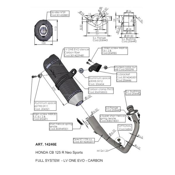 Lo scarico Leovince LV ONE EVO CARBON FIBER Honda CB125R Neo Sports Cafe è omologato con catalizzatore incluso, grazie al raccordo incluso e alla viteria fornita, l'istallazione risulta semplicissima, senza applicare modifiche alla moto e senza rimappare la centralina.